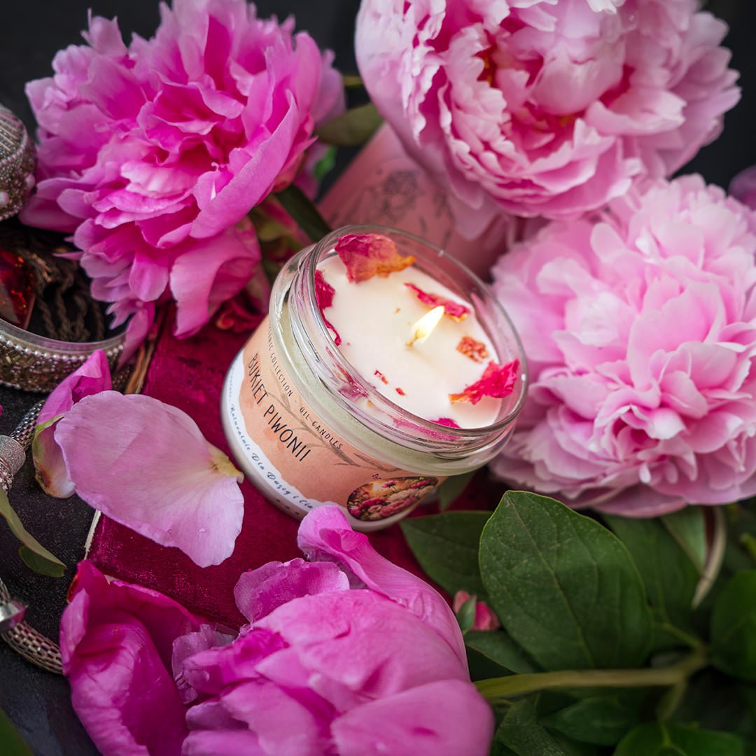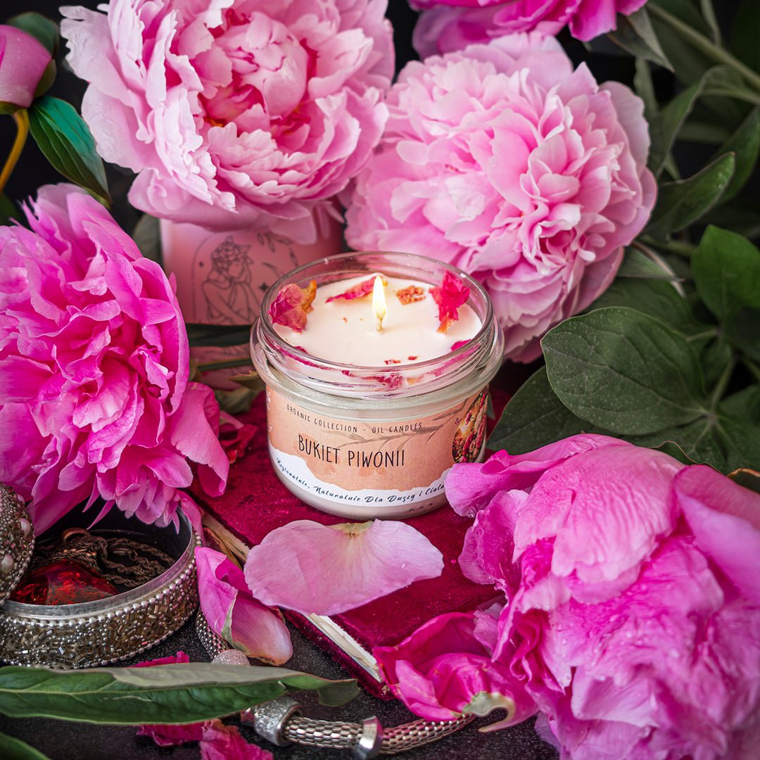 „Bukiet piwonii” przeniesie Cię w aromatyczną ucztę słodyczy i elegancji, tworząc atmosferę pełną przyjemności i niezwykłego uroku. Główny składnik tej zapachowej radości to piwonie – kwiaty pełne wdzięku i delikatności. Wzbogacając kompozycję, pojawia się nuta geranium – kwiat, który dodaje głębi i zmysłowego nastroju. Unosi się również zapach słodkich porzeczek i soczystego granatu, dodający niewinnej słodyczy i energii. Brzoskwinia dodaje aromatycznego rozmachu i kuszącej słodyczy. Jej esencja zapewnia uczucie pełnego radości smaku lata, które dopełnia całą kompozycję. W tle podkreślający esencję zapachu, pojawia się bursztyn – nuta ciepła i trwałości, która dodaje głębi całej mieszance i pozwala rozkoszować się ciepłem danym przez naturalne skarby ziemi. Oprócz tego, nuta tonki, nasion wanilii i piżma wzbudza namiętne uniesienie i podkreśla różne aspekty piękna. Ta świeca to zaproszenie do wyrafinowanego świata piękna i czaru, który przynosi uczucie przyjemności i wspomnienia nieskończonej miłości.