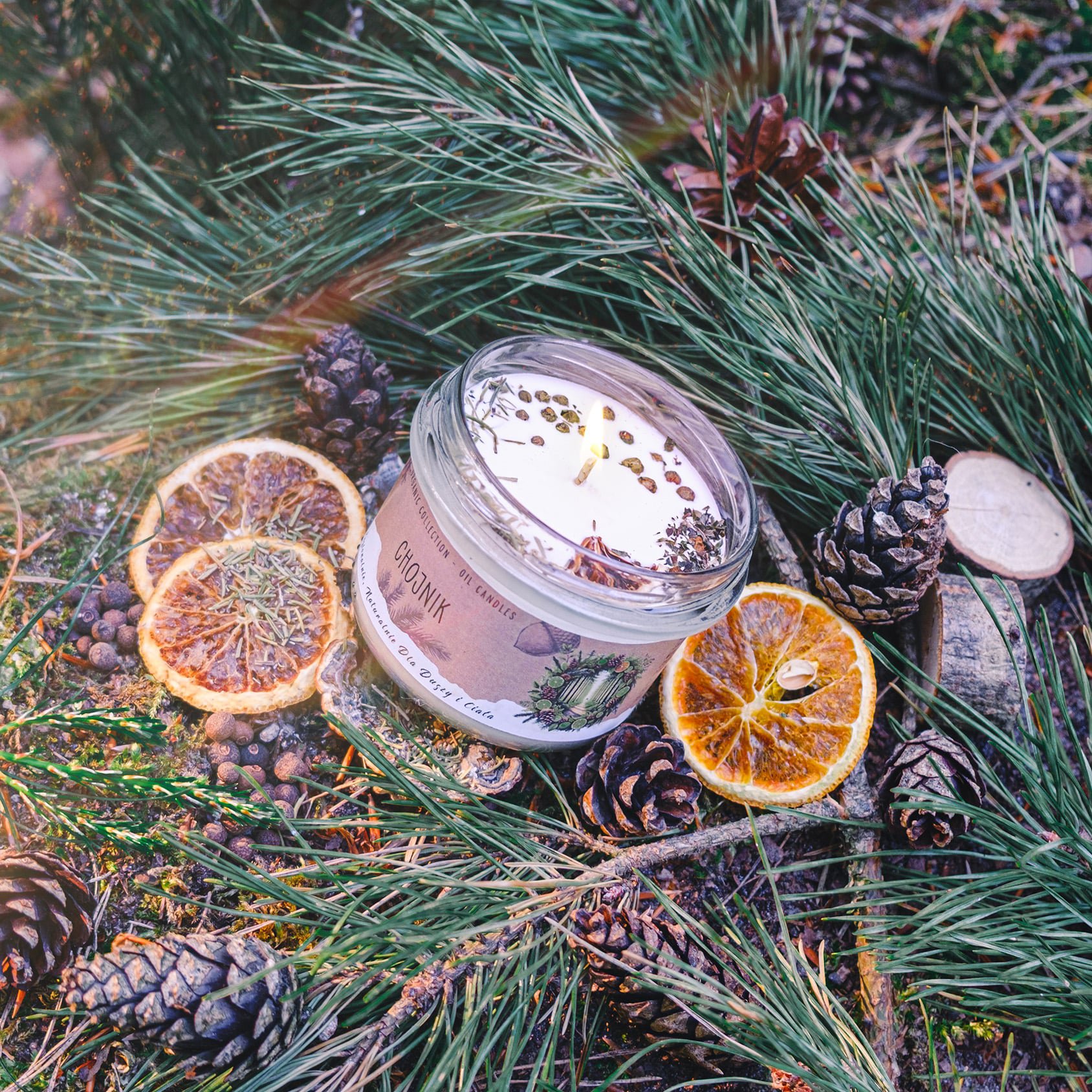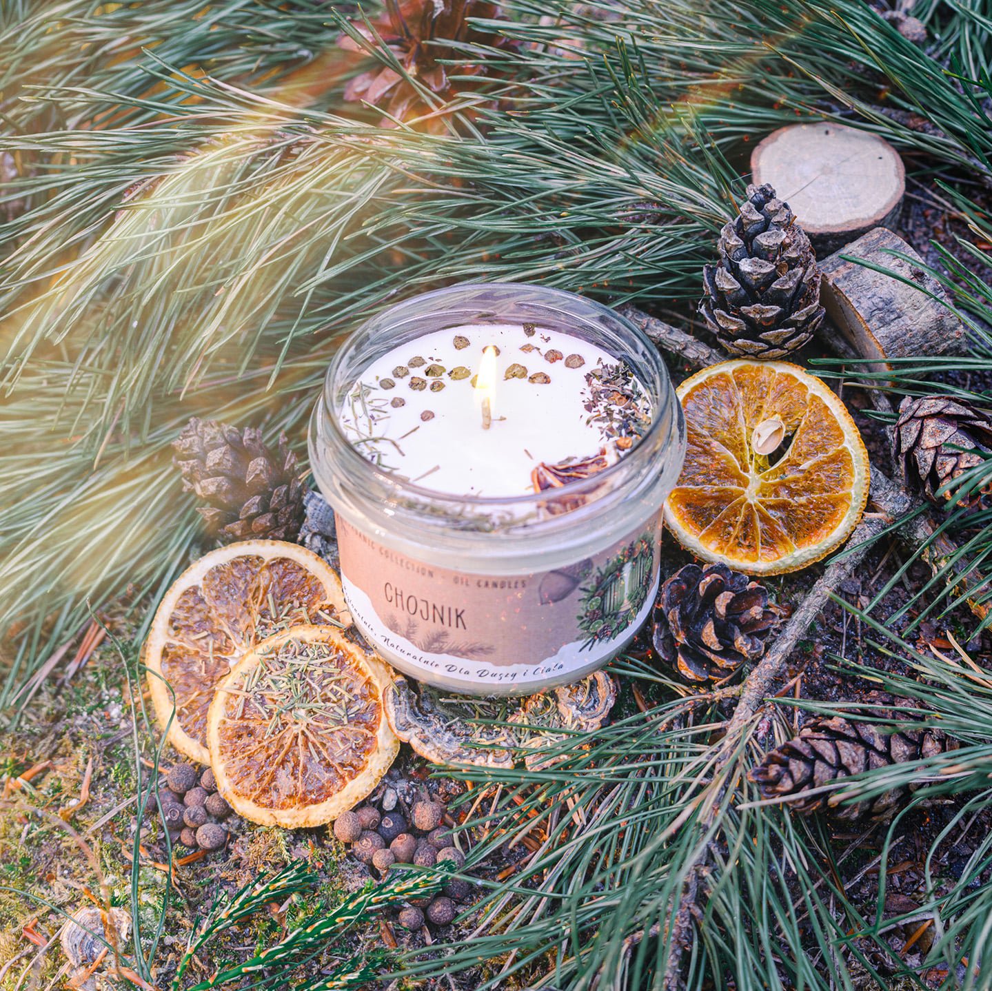 Wykonana z naturalnego wosku z pestek słonecznika i oliwy z oliwek – pali się czysto i długo, roztaczając w domu aurę górskiego lasu.