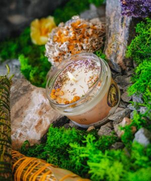 Słoiczek ma około 235 ml, pali się wielokrotnie dłużej niż parafinowa, zawiera około 200 ml wosku. Dołączone do niej nakrętki mogą posłużyć jako podstawki. Proszę pamiętać, że zioła, kwiaty i przyprawy suszone mogą stworzyć flarę ognia, należy obserwować nasze wyroby woskowe. W przypadku zbliżenia się suszu do ognia należy odsunąć na bok lub wyciągnąć nadmiar suszu z wosku (np.: wykałaczka czy łyżeczką).