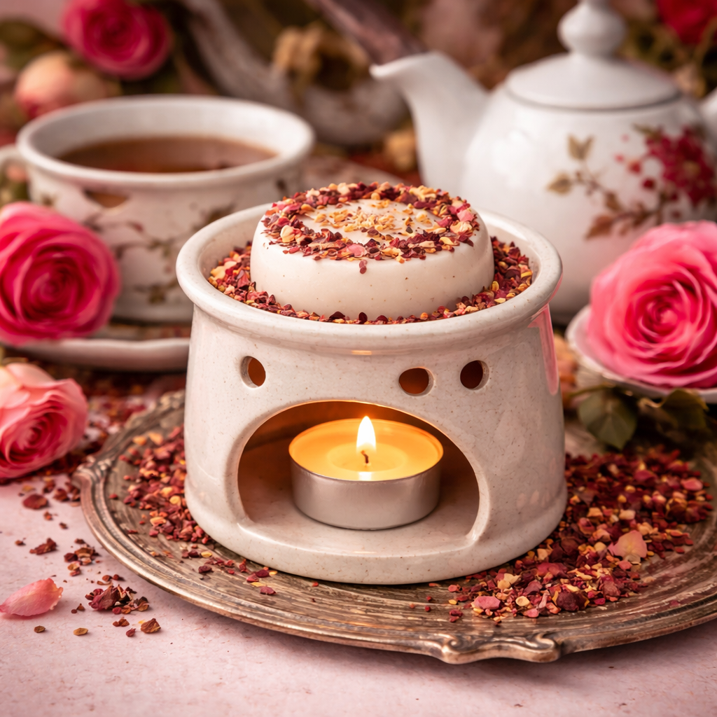 „Herbaciana” to subtelna kompozycja zapachowa, która przenosi Cię do spokojnego ogrodu pełnego kwiatów i aromatycznej herbaty. Zapach róży dodaje romantycznego i kwiatowego akcentu, otulając przestrzeń subtelnym i urokliwym aromatem. Mandarynka, limonka i pomarańcza wnoszą świeży i orzeźwiający charakter, pobudzając zmysły. Cyklamen i fiołek dodają delikatności i uroku. Tonka nadaje gładkości i harmonii, tworząc bazę dla całej kompozycji. Kostki zapachowe tworzą atmosferę wyciszenia i przyjemnego zrelaksowania. Ich delikatny zapach przenosi Cię do przytulnego ogrodu, gdzie zapachy naparu z róży, cytrusów i delikatnych kwiatów tworzą pieczałowicie dobraną całość. Ciesz się tym aromatem, który otuli Twoje zmysły, dając Ci chwilę spokoju i harmonii. Zamknij oczy, oddaj się temu ukojeniu i pozwól, by zapach świecy wprowadził Cię w stan relaksu i wewnętrznej równowagi.
