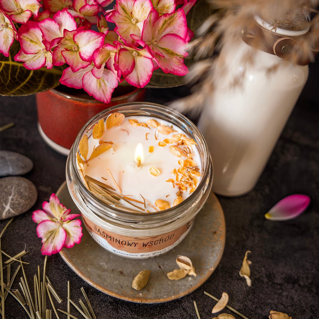 „Jaśminowy Wschód” to zapach orientalny, oaza pełna kwiatowych uniesień. Skórka z cytryny i liść goździka otwierają kompozycję nutami świeżości. Lilia orientalna, indyjski jaśmin i herbaciana róża układają się w zmysłowy taniec kwiatowych akcentów, tworząc wyjątkowy bukiet aromatyczny. To zapachowy wschód, gdzie orientalna elegancja i delikatność kwiatów łączą się w harmonii, tworząc atmosferę magicznego orientalnego ogrodu.