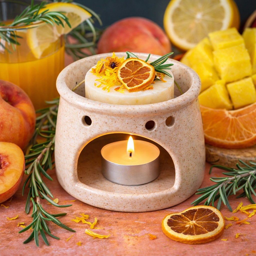 „Multiwitamina” to prawdziwe pobudzenie dla zmysłów, które dostarcza bogactwo energii i radości. Jej kompozycja zapachowa obejmuje olejki zapachowe cytryny, brzoskwini, mandarynki, mango, trzciny cukrowej, ambry i wanilii. Zapach cytryny dodaje orzeźwiającej i energetyzującej nuty, pobudzając zmysły swoim promienistym aromatem. Brzoskwinia i mandarynka dostarczają delikatnych i owocowych tonów, tworząc harmonijną całość. Mango i trzcina cukrowa dodają soczystych i egzotycznych akcentów, wprowadzając uczucie słodkiej przyjemności. Wanilia i ambra nadają gładkości, ciepła i wyrazistości całej kompozycji, harmonijnie kojarząc się z aromatami słodyczy. Przenieś się w optymistyczną i energetyczną atmosferę i pozwól by aromatyczny bukiet wprowadził Twoje wnętrze w stan radosnej stymulacji. Ciesz się tą odżywczą mieszanką zapachów, która pobudza zmysły i dodaje pozytywnej energii.
