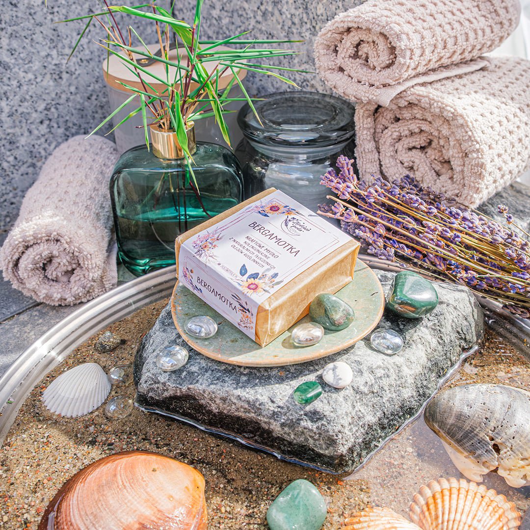 „Bergamotka” to mydło sodowe bez sztucznych barwników, konserwantów ani detergentów. Ze względu na zgubny wpływ plantacji palm olejowych na środowisko, nie zawiera również oleju palmowego. Za to aż 35% jego składu stanowi tłoczony na zimno olej rzepakowy z lokalnych upraw. Mydło robione ręcznie w tradycyjnym procesie zmydlania na zimno, a jego skład został dobrany pod kątem jak najlepszych właściwości pielęgnujących. Mydło posiada miły zapach bergamotki.