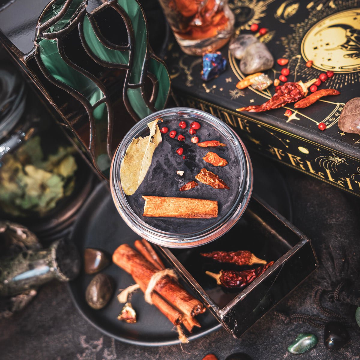 Aby podkreślić jego demoniczny charakter, świeca kryje w sobie liść laurowy, pieprz czerwony, paprykę chili i cynamon. To ogień i popiół w jednej chwili – przyprawy, które rozpalają zmysły i przywołują wspomnienie nieugaszonego płomienia.