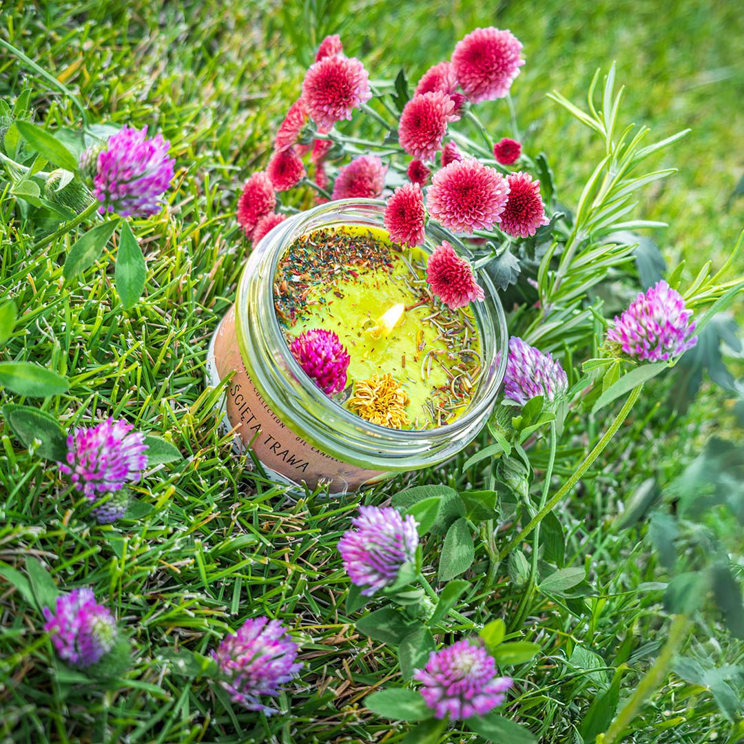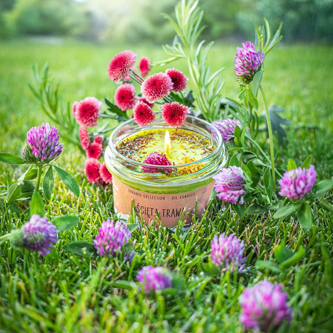 „Ścięta Trawa” to świeca, której zapach przenosi cię do świeżego pola po koszeniu. Skórka pomarańczowa i cyklamen otwierają kompozycję, wprowadzając delikatny akcent świeżości. Nuty zielonych liści, liścia fiołka i słodkiej trawy nadają aromatycznej głębi, tworząc zapachowy krajobraz pełen natury. Aromat siana doskonale komponuje się z resztą, dodając subtelności i przywołując obrazy letnich dni spędzonych na świeżym powietrzu.