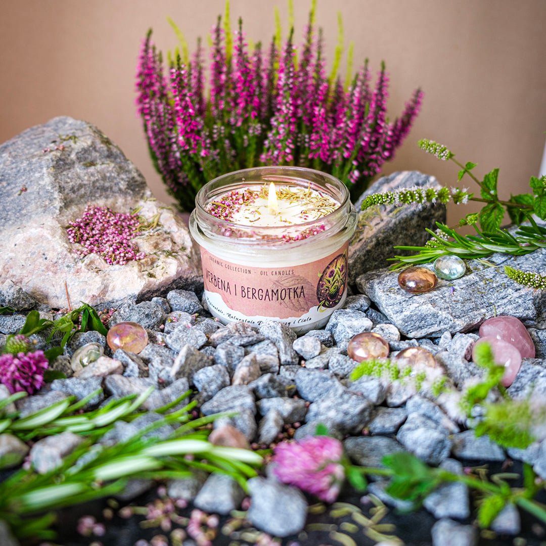 „Verbena i bergamotka” to wspaniała kompozycja zapachowa, która przenosi Cię w aromatyczną podróż do ogrodu pełnego świeżych ziół i cytrusowych owoców. Werbena i limonka wprowadzają orzeźwiający i rewitalizujący charakter do wnętrza, dodając nut cytrusowej świeżości. Pomarańcza, grejpfrut i bergamotka dodają soczystości i energetyzującego zapachu, pobudzając zmysły. Brzoskwinia i frezja dodają słodyczy i kwiatowego uroku, a lawenda i geranium wprowadzają delikatność i harmonię. Mięta i konwalia dodają odrobiny świeżości, a kwiat jabłoni i szałwia nadają subtelne akcenty. Mech, tonka, wanilia i piżmo tworzą podstawę dla kompozycji, dodając trwałości i głębi. Świeca stwarza atmosferę energetyzującej świeżości i delikatnego ukojenia. Ciesz się tym aromatycznym połączeniem, które pobudzi Twoje zmysły i otuli Cię komfortem. Zamknij oczy, zanurz się w wirze żywych zapachów, które przyniosą harmonię i radość.